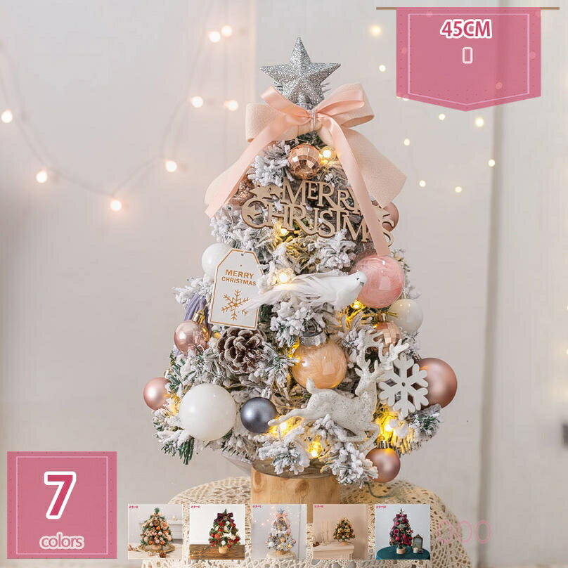 北欧風の卓上ミニクリスマスツリー45cm オーナメント付きで部屋や店内を彩るLEDライト搭載の電飾飾りでプレゼントにもおすすめ