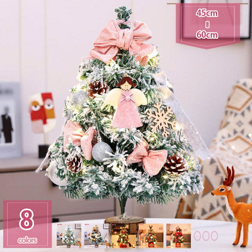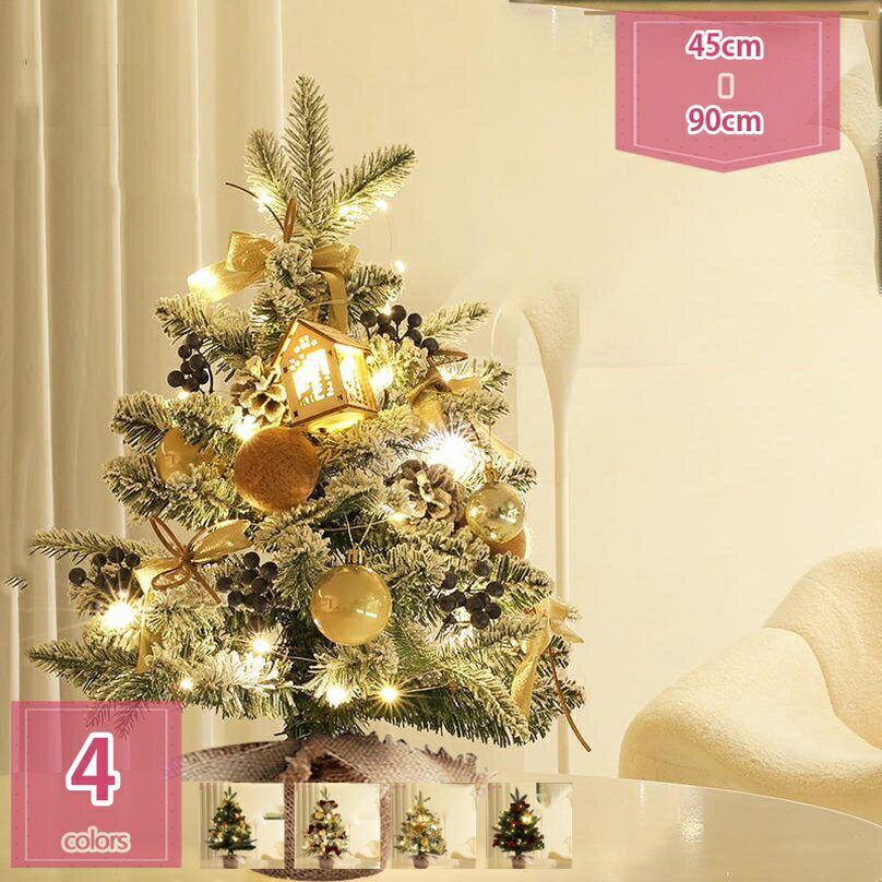 クリスマスツリー 卓上 北欧風 45cm 60cm LEDライト付き 雪化粧 飾りつけ 簡単組立 電・・・