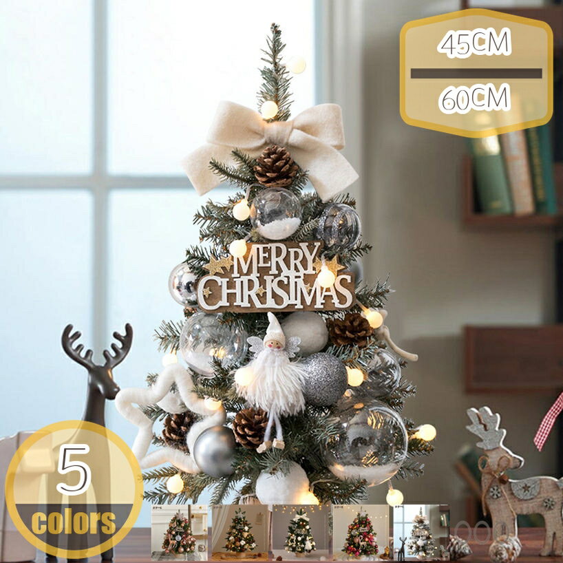 クリスマス雰囲気満点!ミニツリー クリスマスツリー 卓上 45cm ツリー ミニ 部屋 商店 珈琲屋さんやパン屋さん 北欧風 ledライト おしゃれ 小型 セット 小さい 飾り 置物