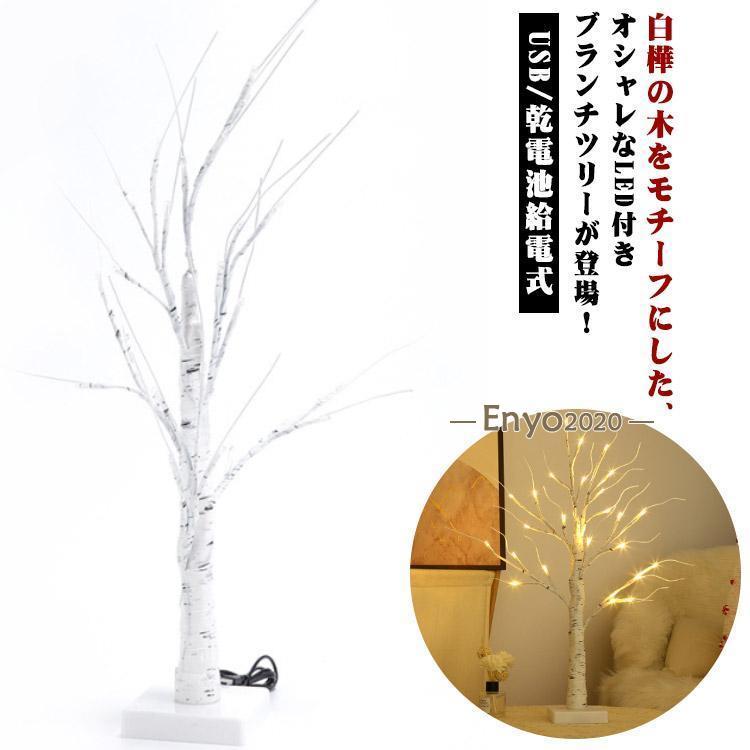 LEDライト 卓上ツリー 常夜灯 USB/乾電池給電式 白樺 クリスマスツリー イルミネーション 高さ45cm クリスマスツリー 北欧風 パーティー