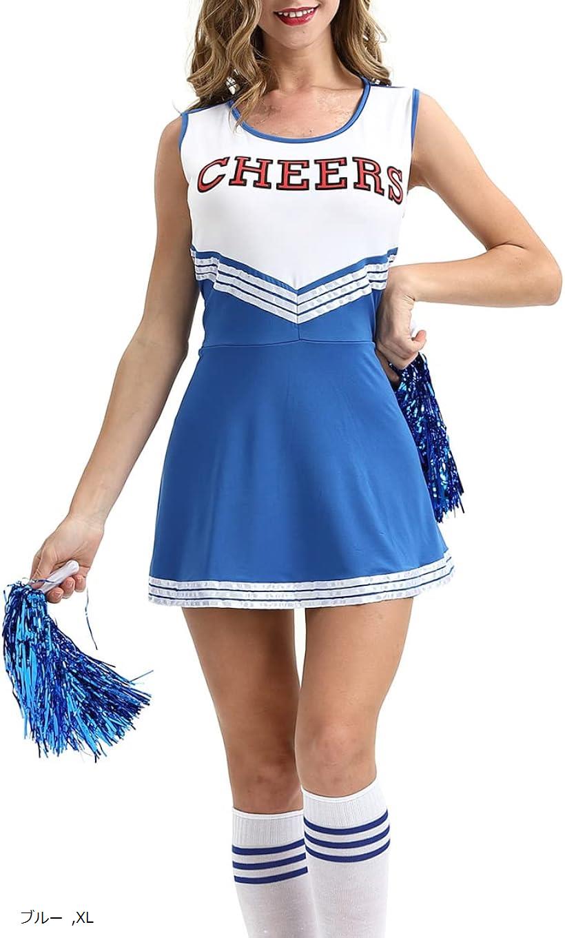 チアリーダー コスプレ レディース チアガール 衣装 コスチューム ブルー、XL(ブルー, XL)・・・