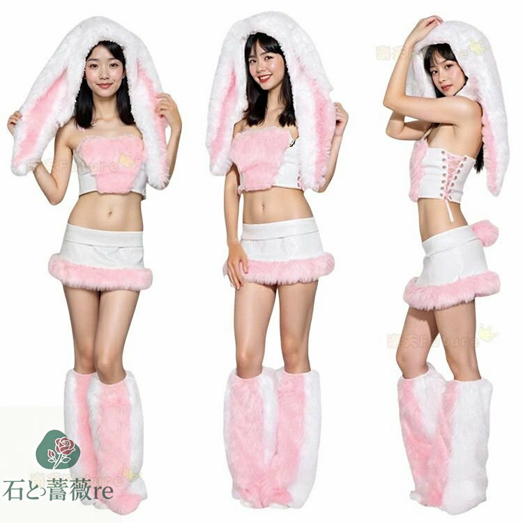 ダンス 衣装 チアガール チアダンス レディース かわいい ウサギ 白 ピンク もこもこ スカート ・・・