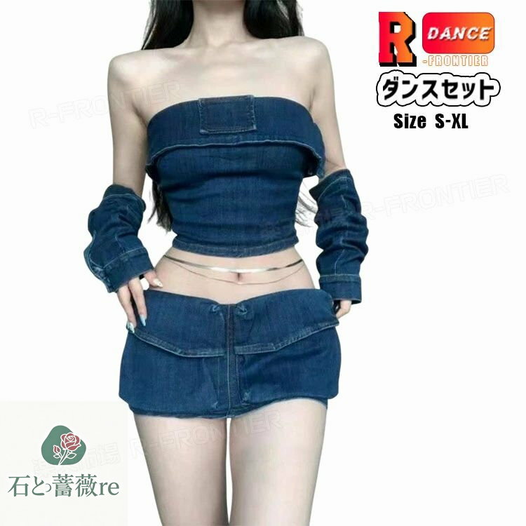 デニム ダンス 衣装 韓国 アイドル 衣装 ダンス衣装 セットアップ 大人 3点セット スカート ト・・・
