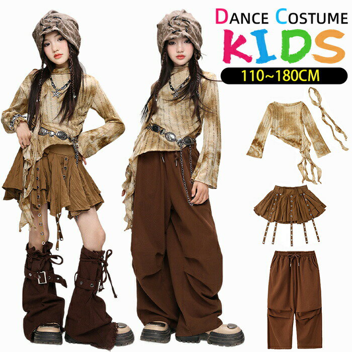 キッズ ダンス 衣装 ヒップホップ 女の子 子供 セットアップ パンク風 土色 砂漠 チアガール ア・・・