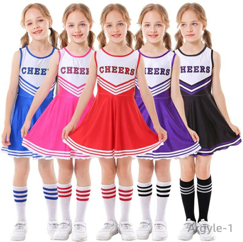 子供服チアガール衣装 ダンスウェア サッカー コスプレ 舞台 イベント 演出服 合唱服 発表会 入学式 卒業式 運動会 上下5点セット100cm-170cm