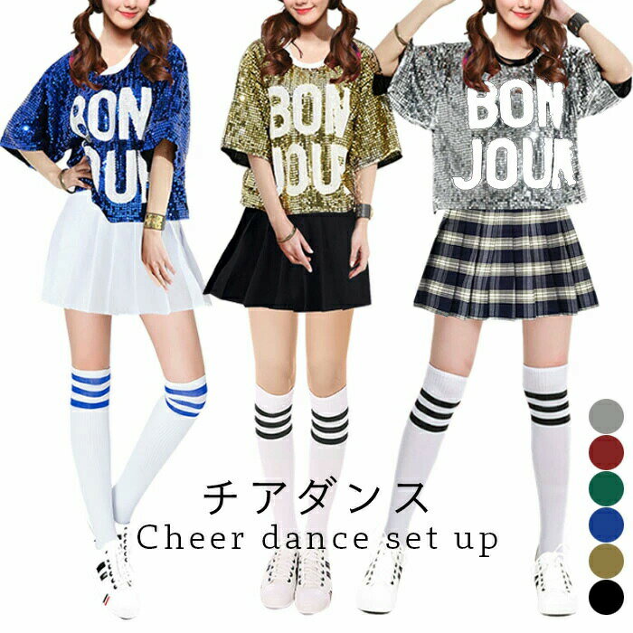 きらきら存在感たっぷりなチアダンス コスプレ チアガール レディース 二点セット 上下セット チアダンス チアリーダー 応援 チア ダンス スパンコール付き セットアップ 学園祭