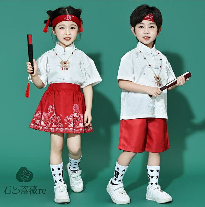 中華子供漢服 イベント 子供中華唐装・漢服 中華シャツ上下2点