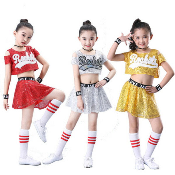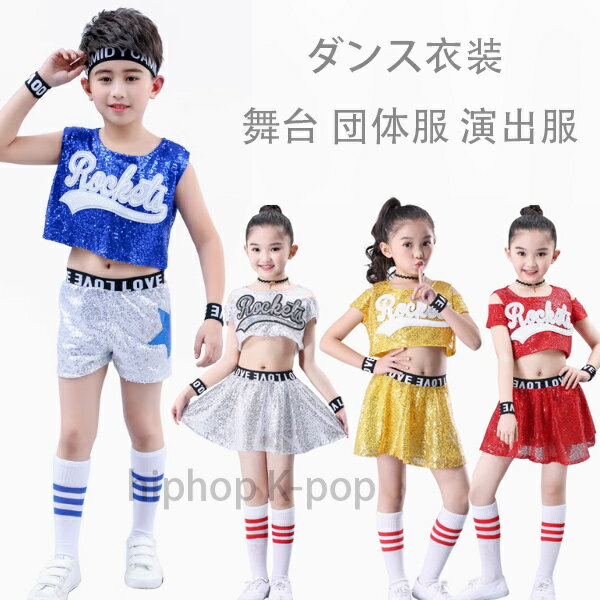 チアリーダー衣装 応援団服 チアガール コスチューム ダンス衣装 甲子園 スパンコール ヒップホップ セットアップ ジュニア キッズ 女の子 子ども ジャズダンス