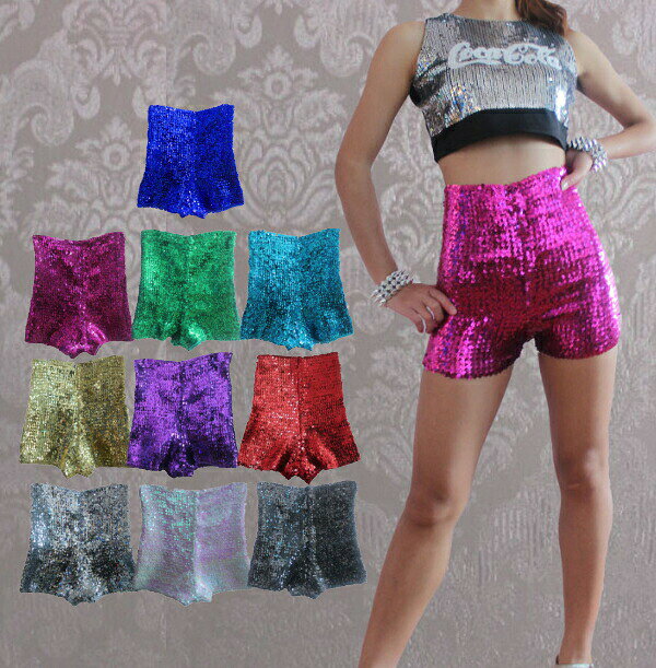 スパンコール衣装 ハイウエスト ショーツパンツ ハーフパンツ 半ズボン全10色・3サイズダンス衣装 ・・・