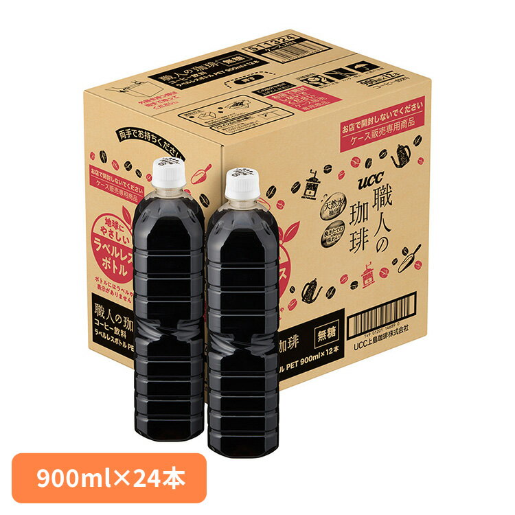 コーヒー ペットボトル UCC 職人の珈琲 無糖 ラベルレスボトル PET900ml ×24本 51・・・