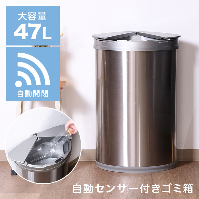 ゴミ箱 ダストボックス ごみ箱 フタ付き ふた付き 蓋付き 自動感知 オートセンサー 自動開閉 ステンレス製 45L 45リットル おしゃれ お洒落