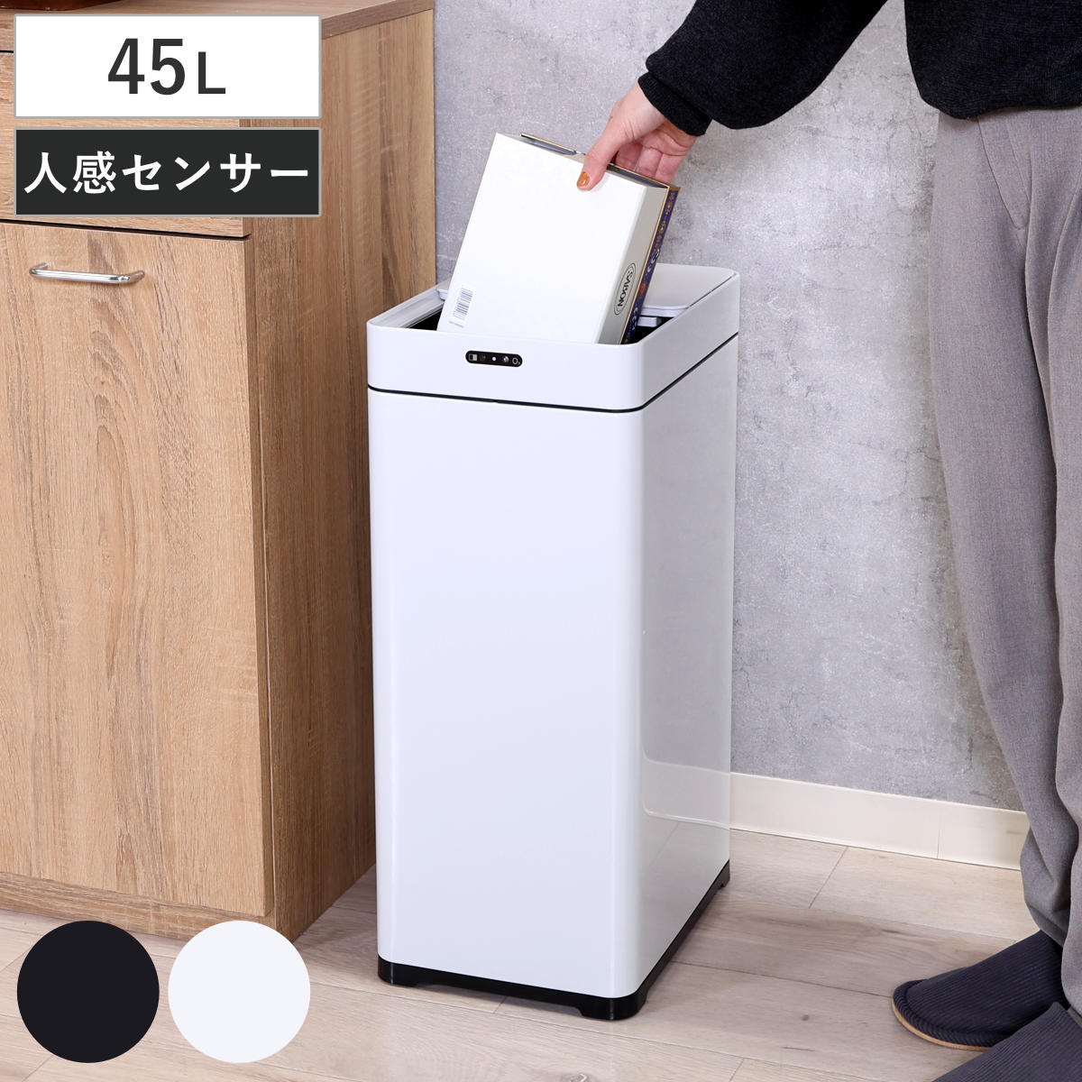ゴミ箱 除菌 消臭 自動開閉 ダストボックス スリム 45リットル センサー式 黒 白 蓋付き