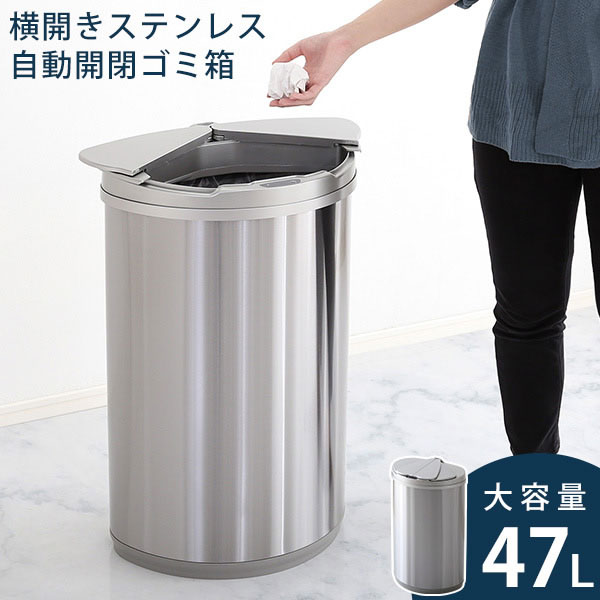 ゴミ箱 自動開閉 自動 45L 横開き センサー おしゃれ ふた付き 自動ゴミ箱 47L ステンレス ダストボックス 蓋付き フタ付き キッチンゴミ箱 電池式 45リットル 大容量 センサー付きゴミ箱
