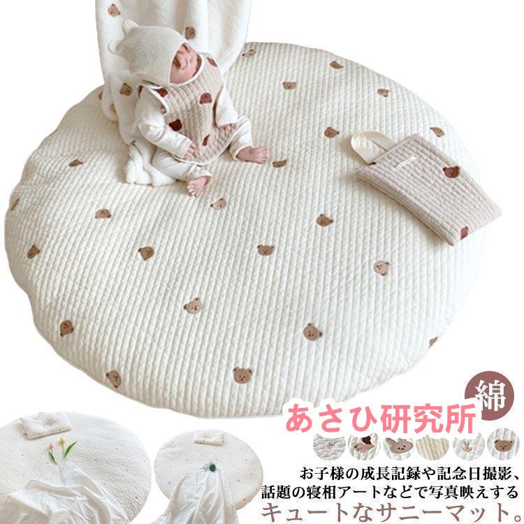 サニーマット ベビー プレイマット クッション お昼寝マット おしゃれ 円形 お昼寝 ベビー布団 洗える 刺繍 赤ちゃん 保育園 幼稚園 園児 写真撮影