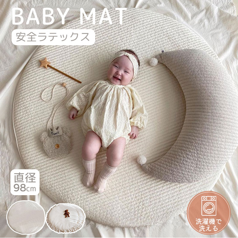 ベビーマット 円形 直径85cm 厚手 綿100% 赤ちゃん プレイマット マルチマット イブルマット ラウンドマット お昼寝マット サニーマット ベビークッション 出産祝い おしゃれ