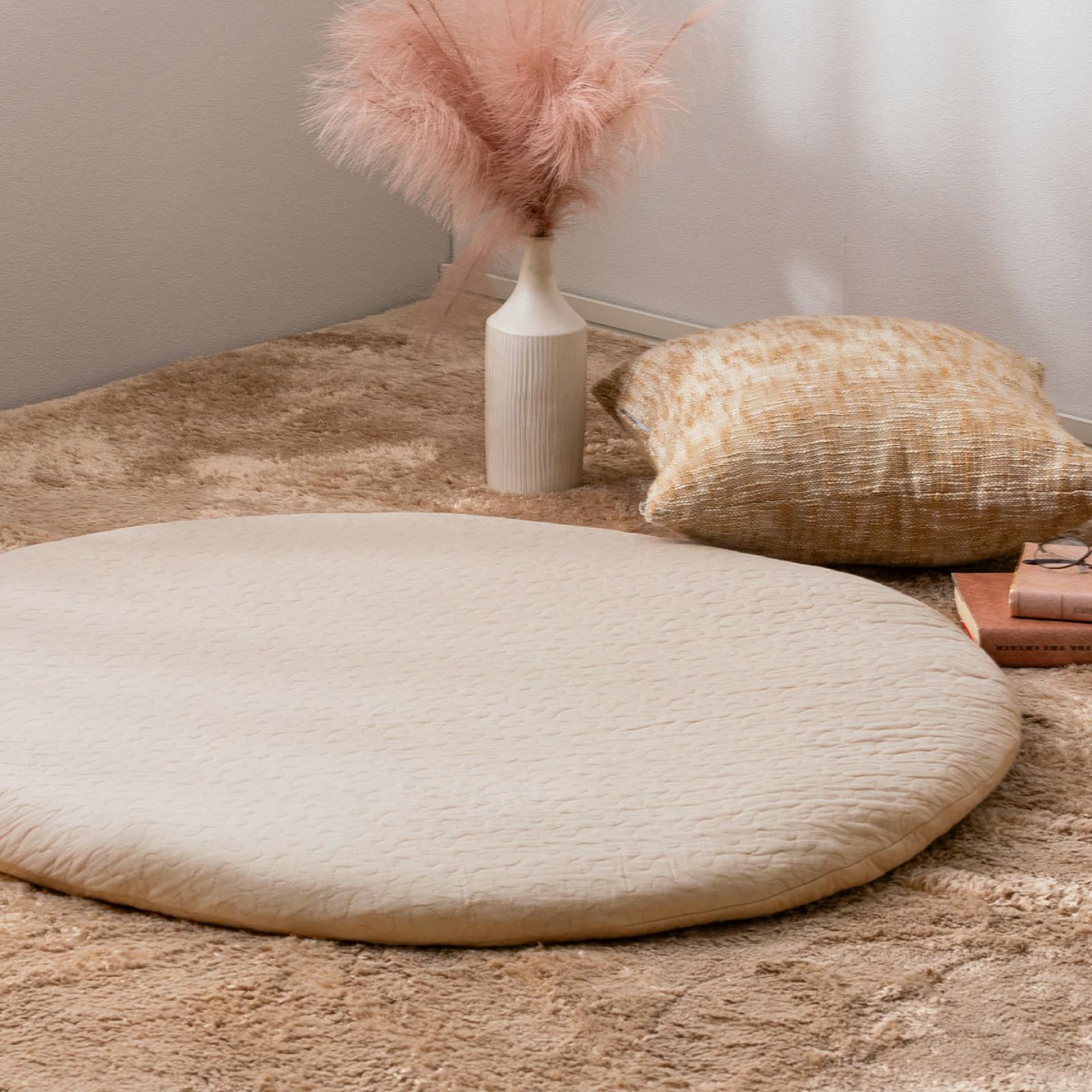 子どものプレイマットやお昼寝にもおすすめの ふかふかの極厚ウレタン入り 円形ラグ 撥水性のある生地で汚れにくくお手入れ簡単