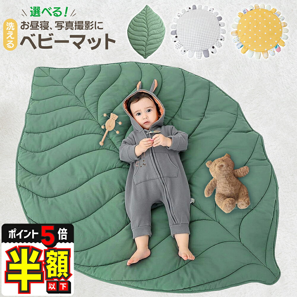 ベビーマット 円形 可愛い プレイマット 汚れたら洗える赤ちゃん キッズ向けのサニーマット!記念撮影 マンスリーフォトのほかお昼寝マットとしても使える♪