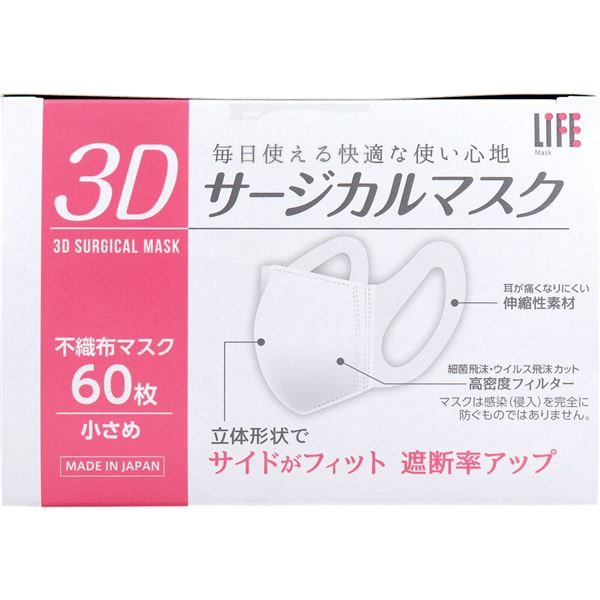 ★ポイント最大16倍★【全国配送可】-3Dサージカルマスク LIFE 小さめ 60枚入 平和メディク・・・