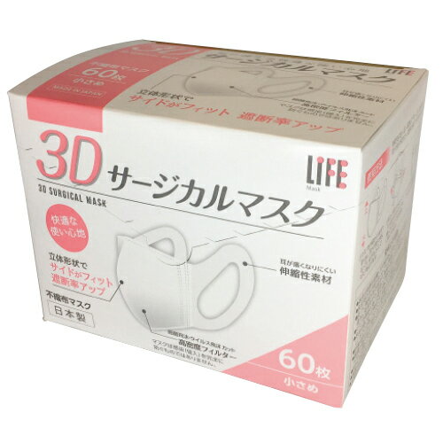 【 まとめ買い20個セット 】 ライフ 3Dサージカルマスク 小さめサイズ 60枚入 【 送料無料 ・・・