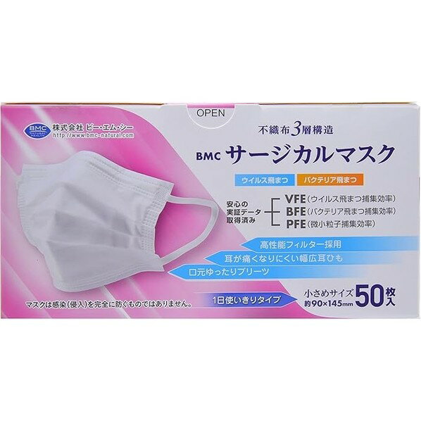 BMC サージカルマスク 小さめ 50枚 956584 【北海道・沖縄・離島配送不可】・・・