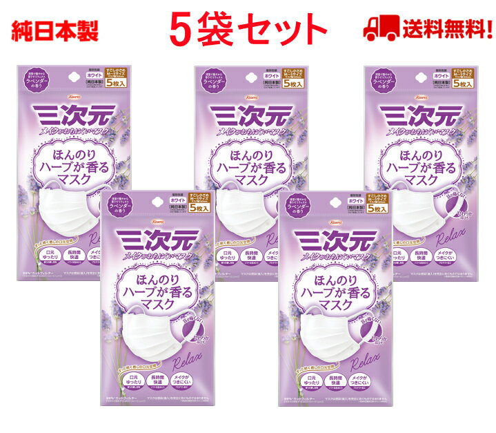 三次元マスク ラベンダーの香り 少し小さめサイズ ハーブ 5枚入 ほんのりハーブが香るマスク 興和三・・・