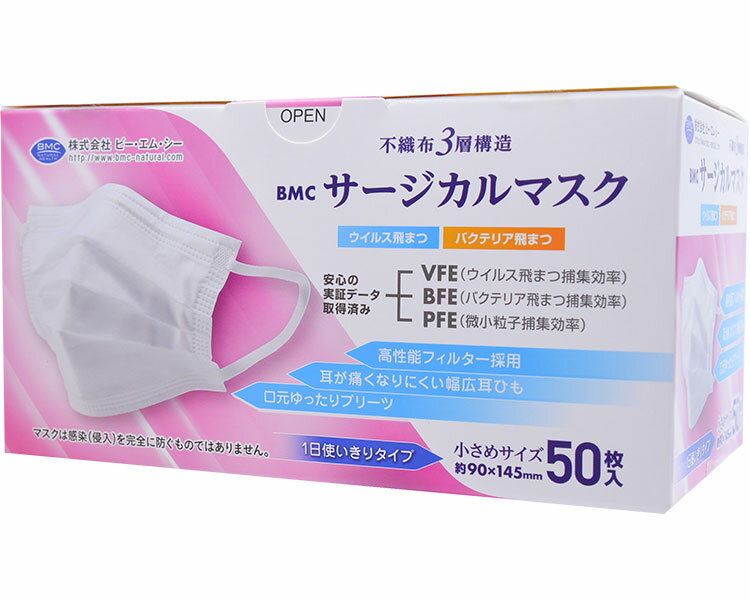 ★ポイント最大16倍★【全国配送可】-BMCサージカルマスク 小さめ 50枚入 ビー・エム・シー J・・・