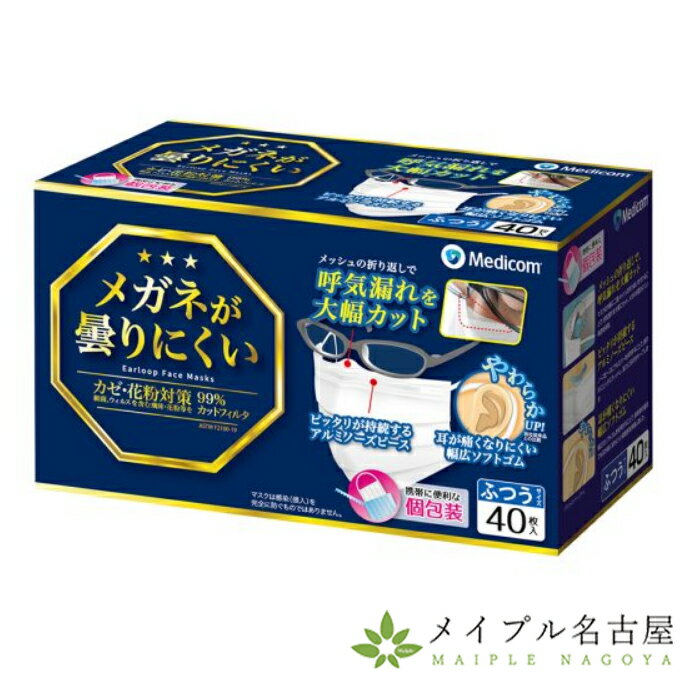 眼鏡が曇りにくいマスク 40枚入り 個包装 メディコムジャパン 医療用 サージカルマスク・・・