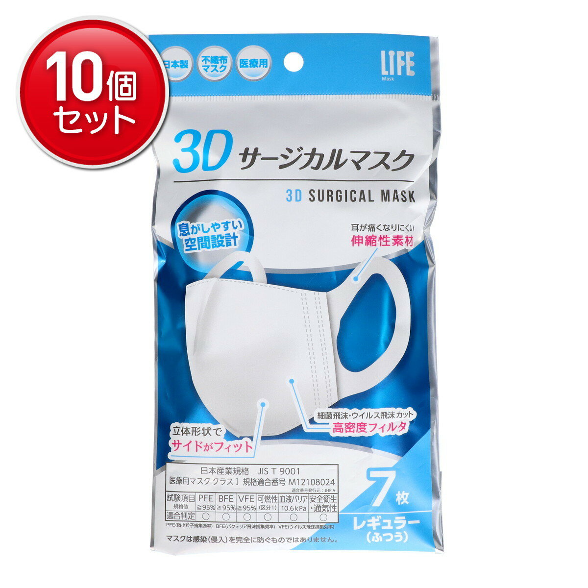 【最安挑戦!まとめ買い×10点セット】平和メディク 3Dサージカルマスク レギュラーサイズ 7枚入・・・
