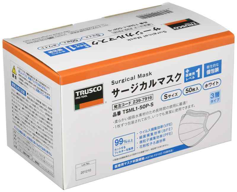 TRUSCO(トラスコ) サージカルマスク(医療用レベル1)(50枚入個包装)Sサイズ ホワイト・・・