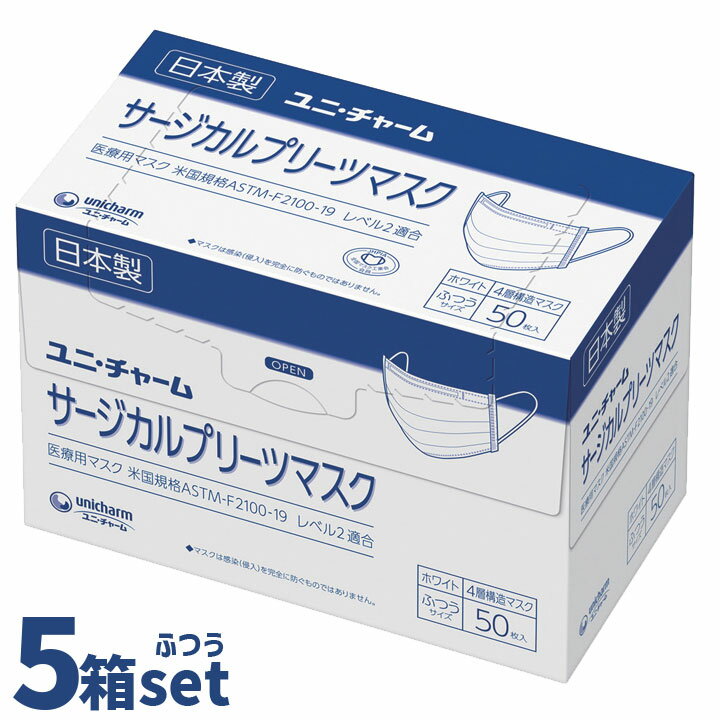 Gユニ・チャームサージカルプリーツマスク ふつう / 57541→54266 白 50枚入×5箱セッ・・・