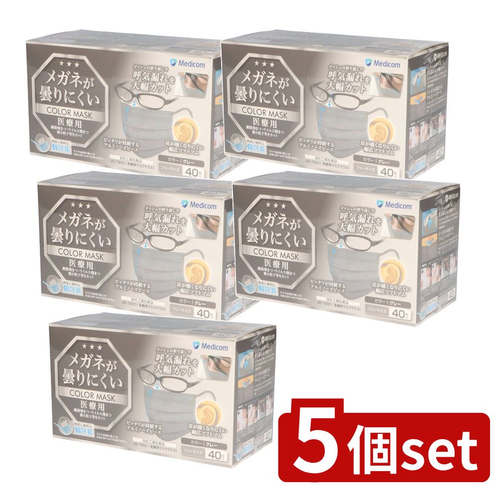 \レビュー特典有/【5個セット】 A.R.メディコム メガネが曇りにくいマスクグレー [単品内容量/・・・