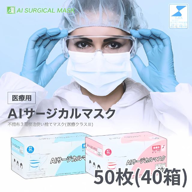 【法人様限定】 医療用 AI サージカル マスク 50枚入 40箱 ホワイト レギュラー スモール ・・・