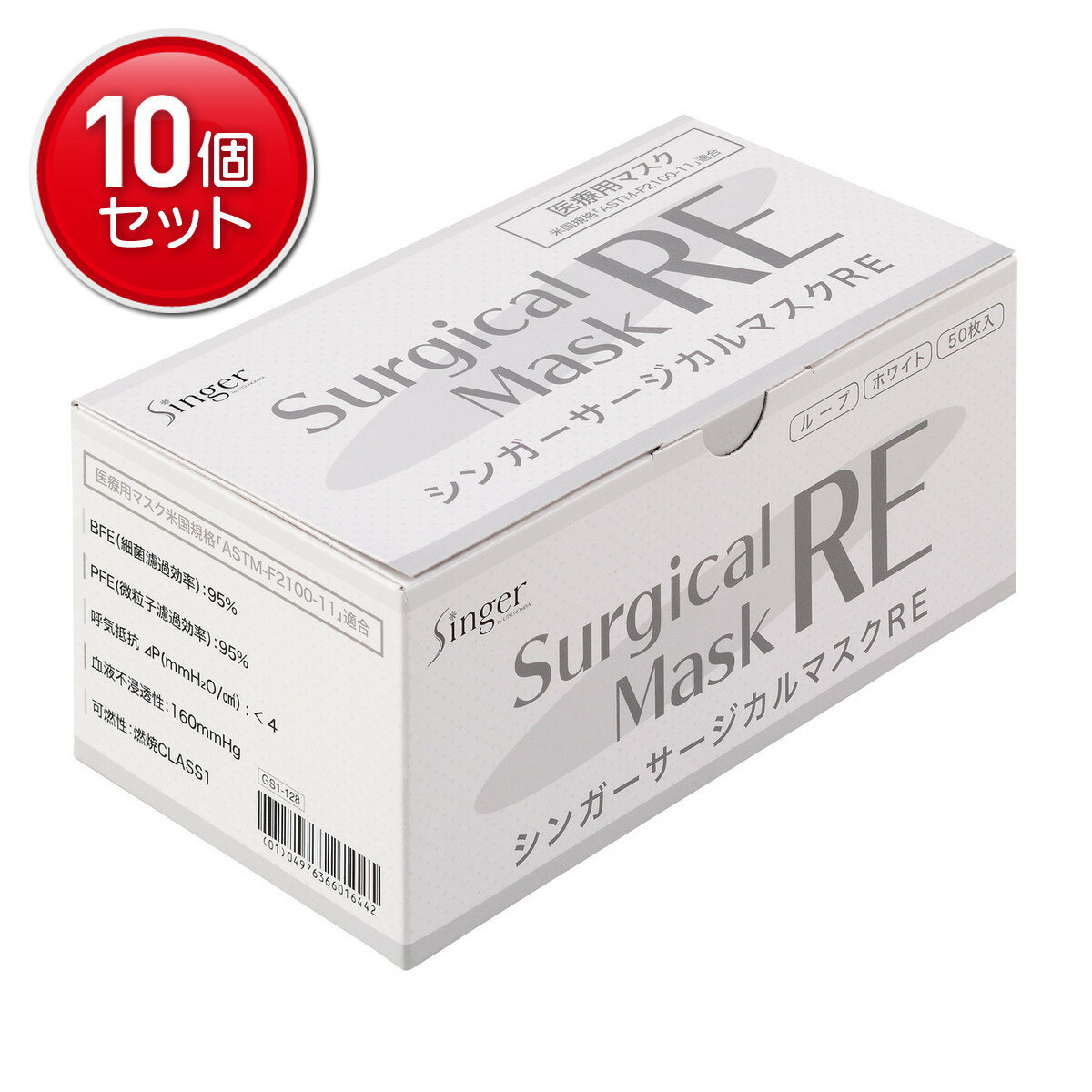 【最安挑戦!まとめ買い×10点セット】宇都宮製作 シンガー サージカル マスク RE ホワイト 50・・・