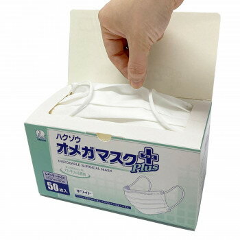 ハクゾウメディカル サージカルマスク ハクゾウオメガマスク プラス ホワイト 50枚入 390142・・・