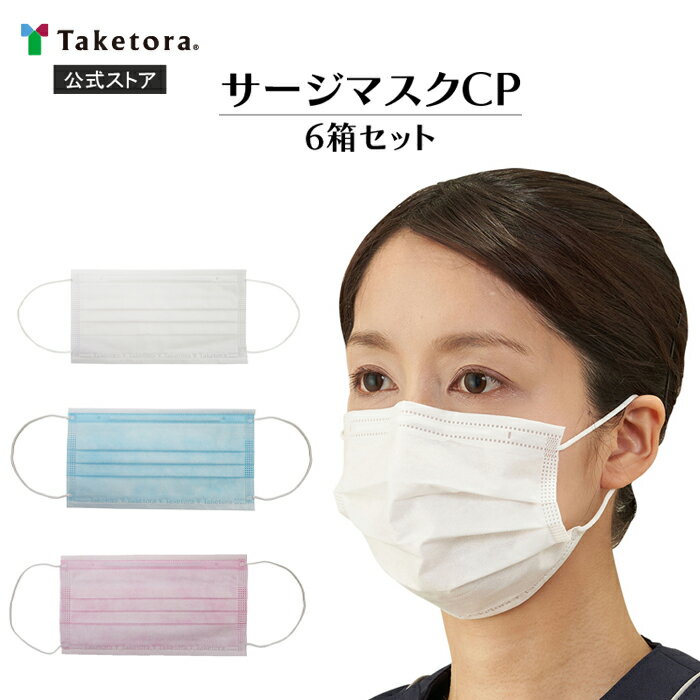 【竹虎公式】竹虎 サージマスクCP 6箱セット ホワイト/ブルー/ピンク 不織布 使い捨て マスク ・・・