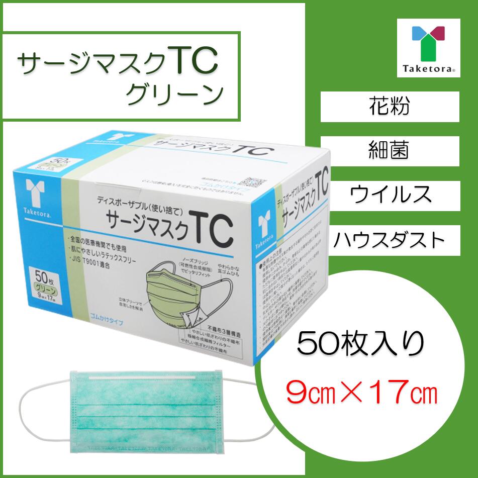【JIS適合新パッケージ】竹虎 サージマスク TC グリーン 9×17 50枚 (JIS T 900・・・