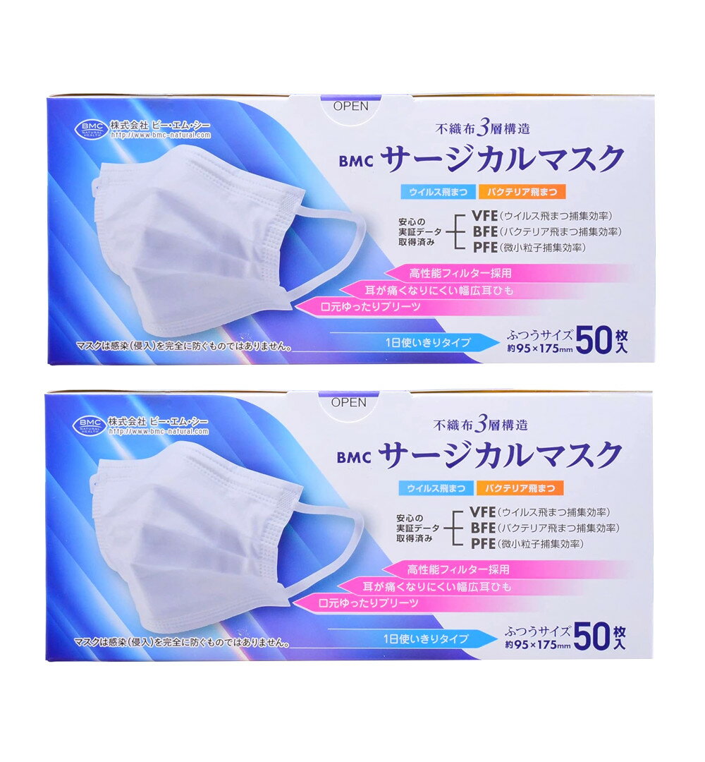 BMC ビー・エム・シー サージカルマスク ふつうサイズ 50枚×2【2個セット】不織布マスク 医療・・・