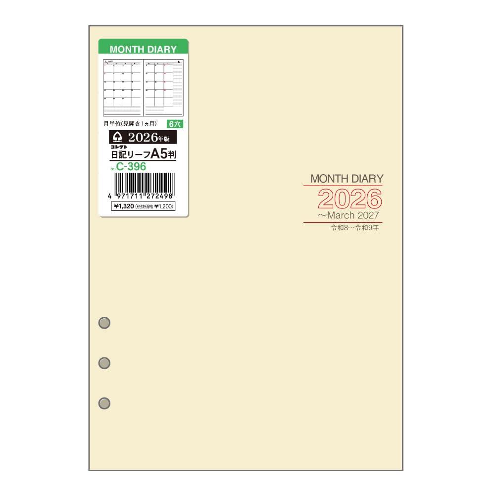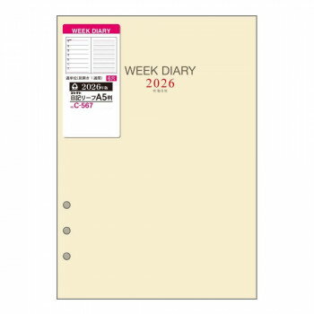 コレクト ダイアリー 2026年版 見開き1週間 ウィークダイアリー A5判 日記リーフ 6穴 C-567 6穴日記リーフ