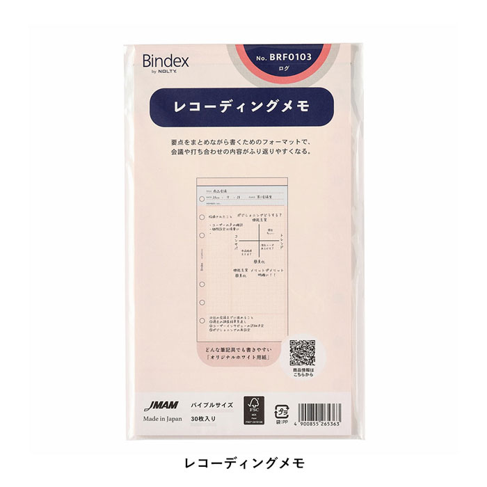 バイブルサイズ システム手帳用リフィル レコーディングメモ【BRF0103】30枚入り 6穴 サイズ・・・