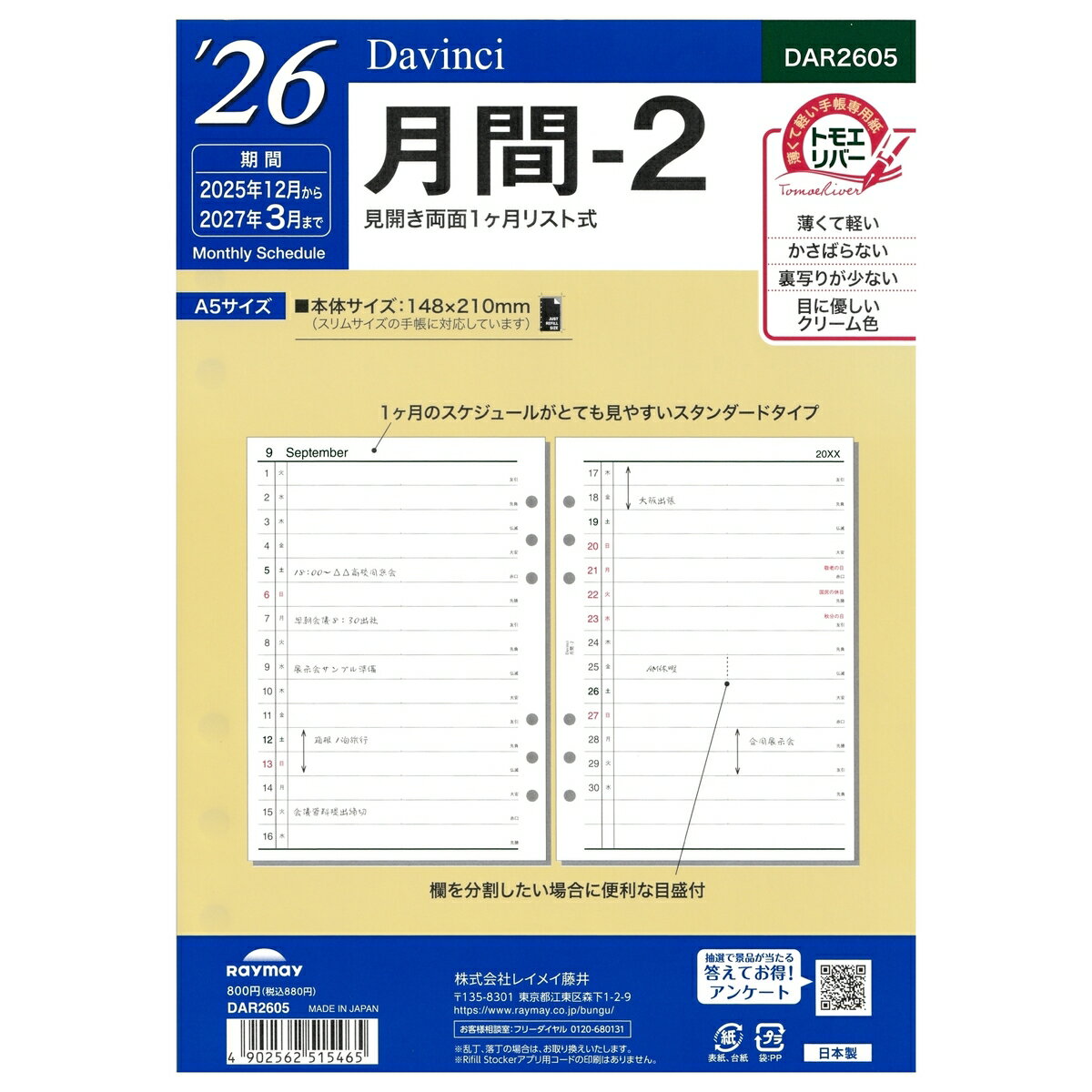 [Davinci] 2026年 A5サイズ 月間-2 DAR2605