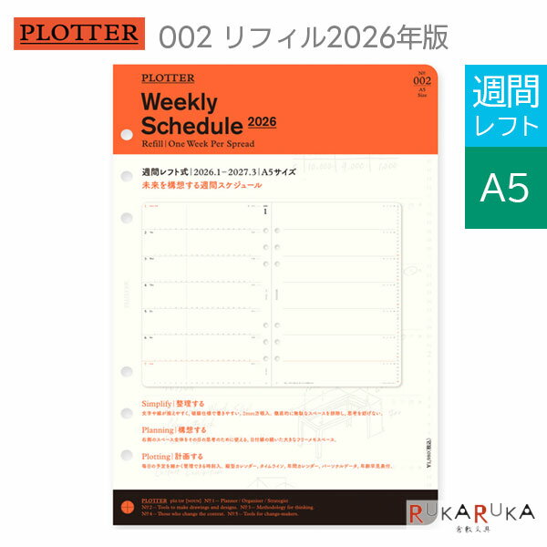 002 2026年 ダイアリーリフィル 週間レフト式 [A5サイズ] 2026年1月・月曜始まり 週・・・