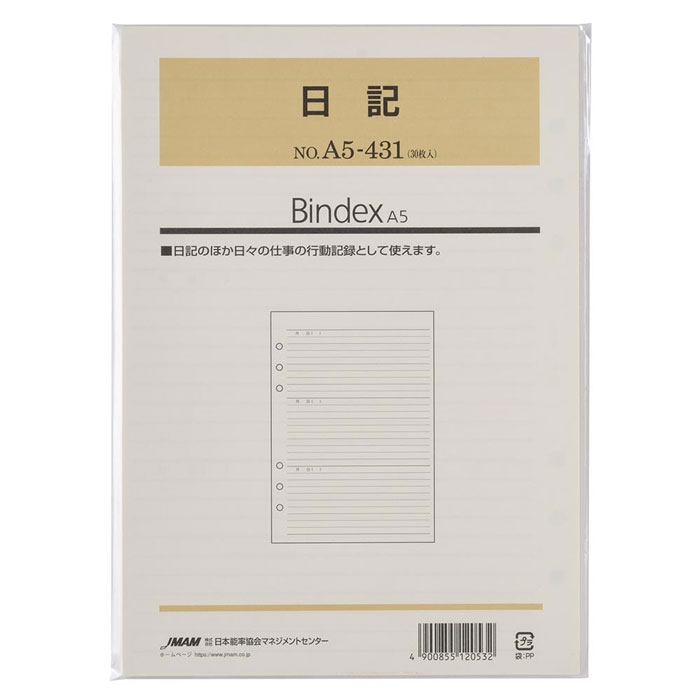 【A5サイズ】 システムバインダーフリーリフィル 日記のほか日々の仕事の行動記録としても使えます。