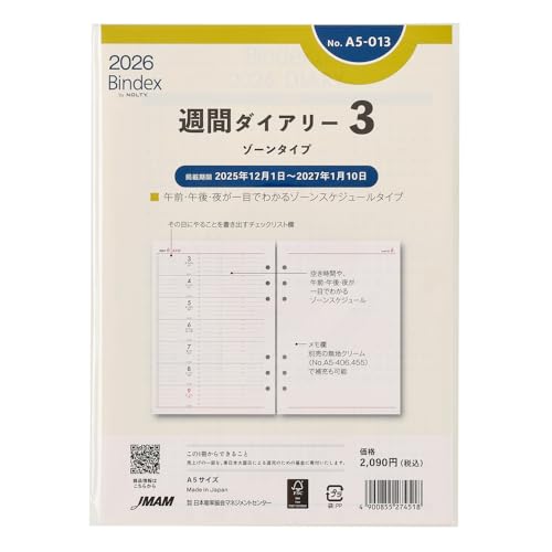 能率 バインデックス システム手帳 リフィル 6穴 2026年 A5 ウィークリー ゾーンタイプ チ・・・