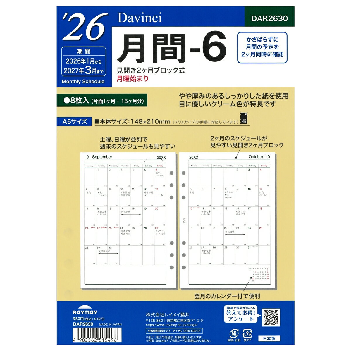 [Davinci] 2026年 A5サイズ 月間-6 DAR2630