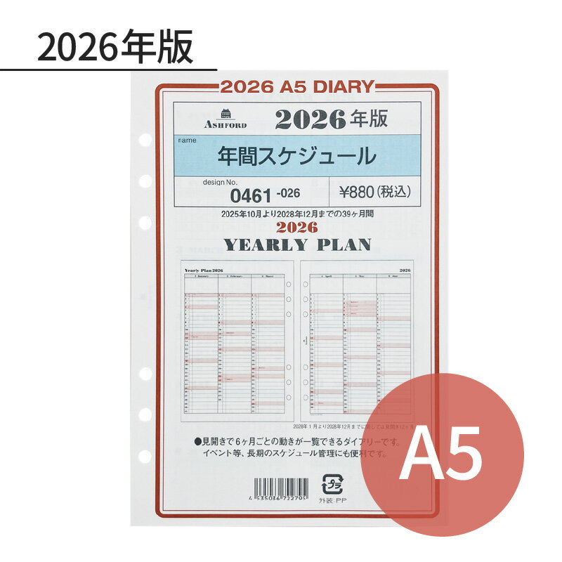 ASHFORD 2026年 システム手帳リフィル A5 年間スケジュール 0461-026・・・