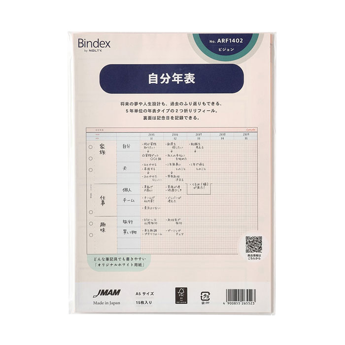 A5サイズ システム手帳用リフィル 自分年表【ARF1402】15枚入り 2つ折りリフィール 6穴 ・・・