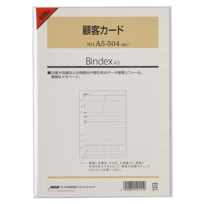 A5サイズ システム手帳用リフィル 顧客カード【A5-504】30枚入り 6穴 サイズ:210×14・・・