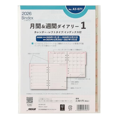日本能率協会 Bindex システム手帳リフィル 2026年 A5 A5031 2週間ダイアリー時間・・・