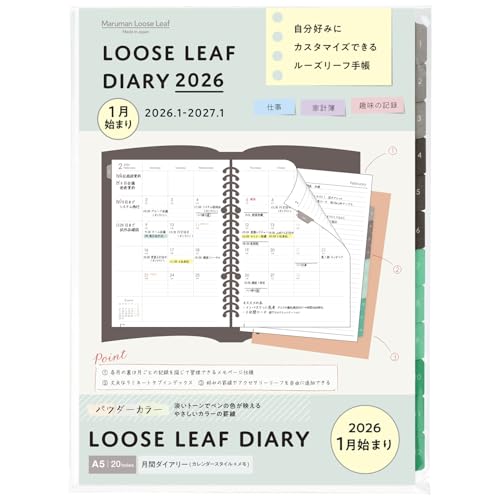 マルマン 手帳 システム手帳 リフィル 2026 A5 ルーズリーフダイアリー マンスリー 20穴 ・・・