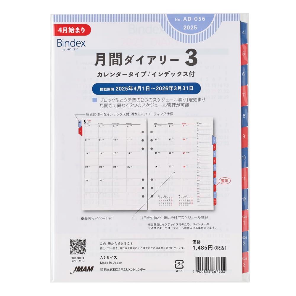 能率 バイ ンデックス システム手帳 リフィル 6穴 2025年 4月始まり A5 マンス リ ー ・・・
